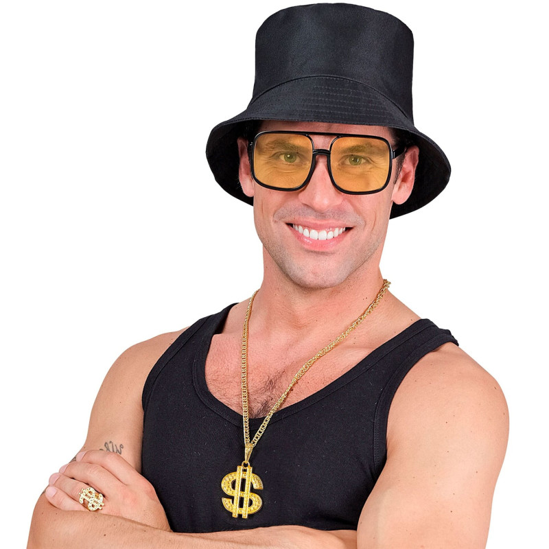 The set includes: hat, glasses, chain, ring