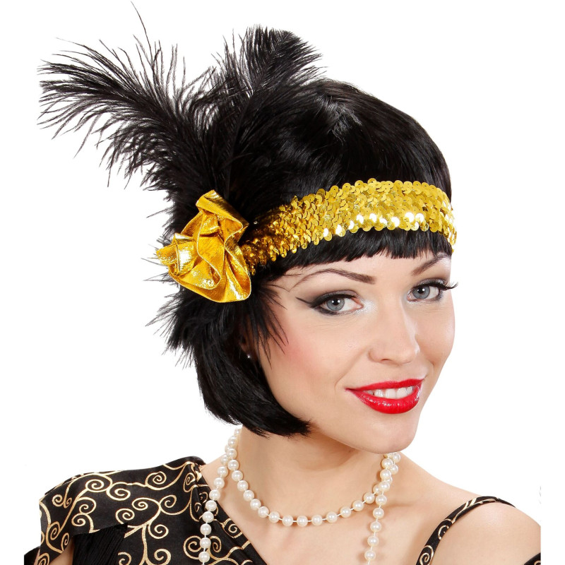 Leather Sparkling Headband with Feathers