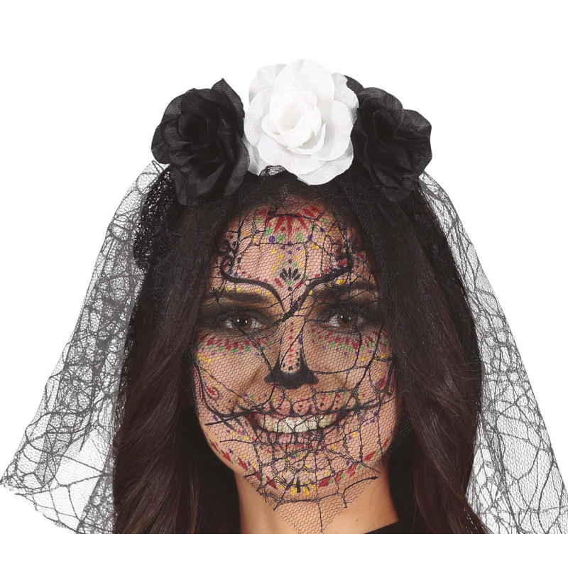 Black and White Floral Tiara with Veil