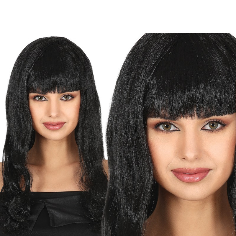 Experience the sophistication of our sleek black wig, crafted with high-quality synthetic fibers for a natural look and feel. This exquisite accessory brilliantly complements any outfit, providing an elegant and versatile styling option. Perfect for adding a touch of glamour to everyday wear or for special occasions, this black wig ensures a stunning transformation with ease.