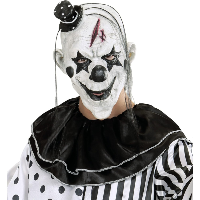 Killer clown mask with hair & mini hat. Material: 95% latex, 5% polyester
