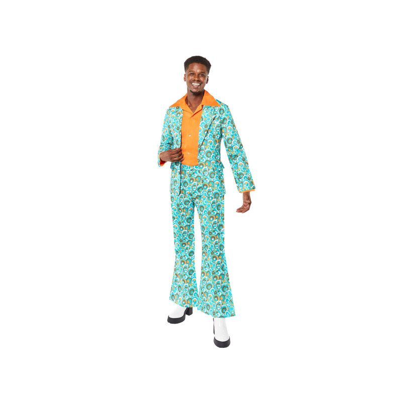 Embark on a journey back in time with this stunning 70s party costume for men! The set includes a colorful, geometric patterned jacket and matching flared trousers that reflect the authentic spirit of the disco era. This stylish costume is perfect for themed parties, carnivals, or any occasion where you want to look impressive and attract attention.