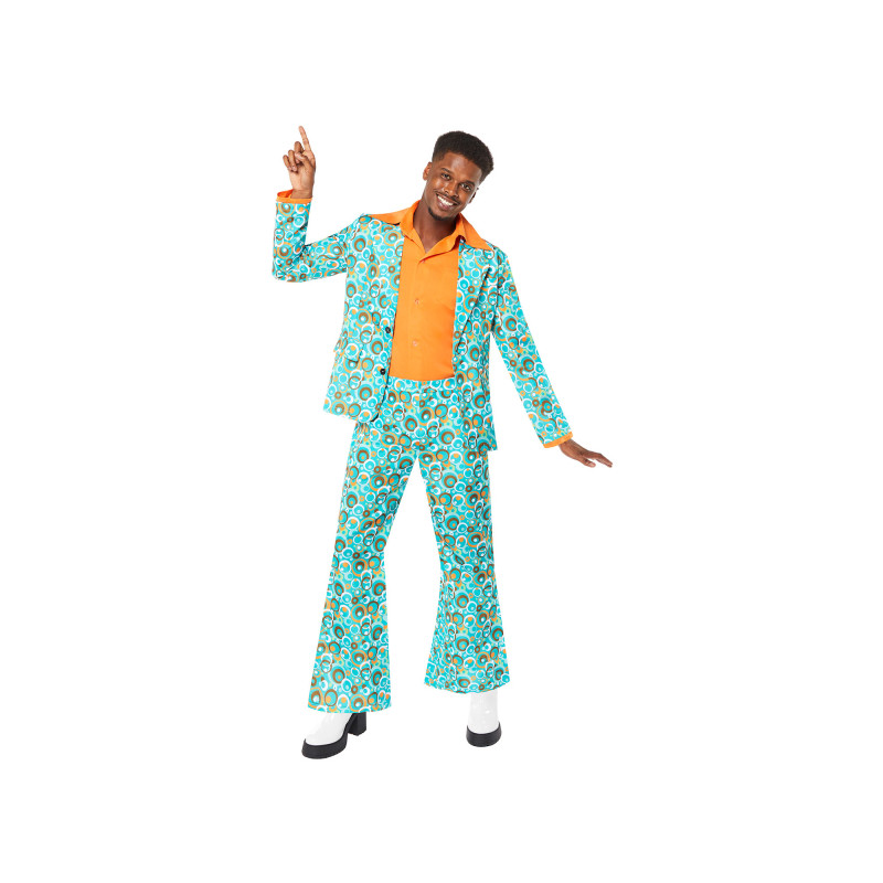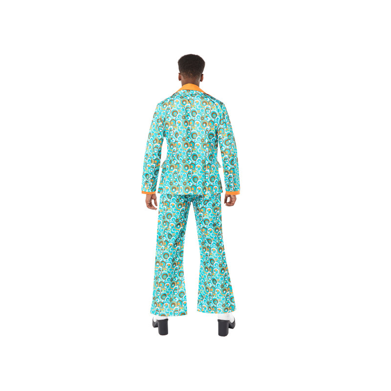 Dress up in this vibrant 70s party costume for men and become the true star of the disco! Colorful patterned blazer, coordinated pants, and stylish design will give an authentic retro look at any themed event.