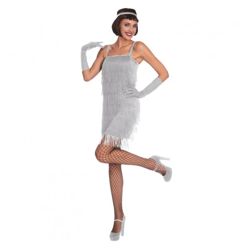 Silver women's dress with fringes is perhaps the most popular choice for a retro-style party. And not for nothing - with this dress you will look especially elegant and as if you came from the era when cinema was still black and white.