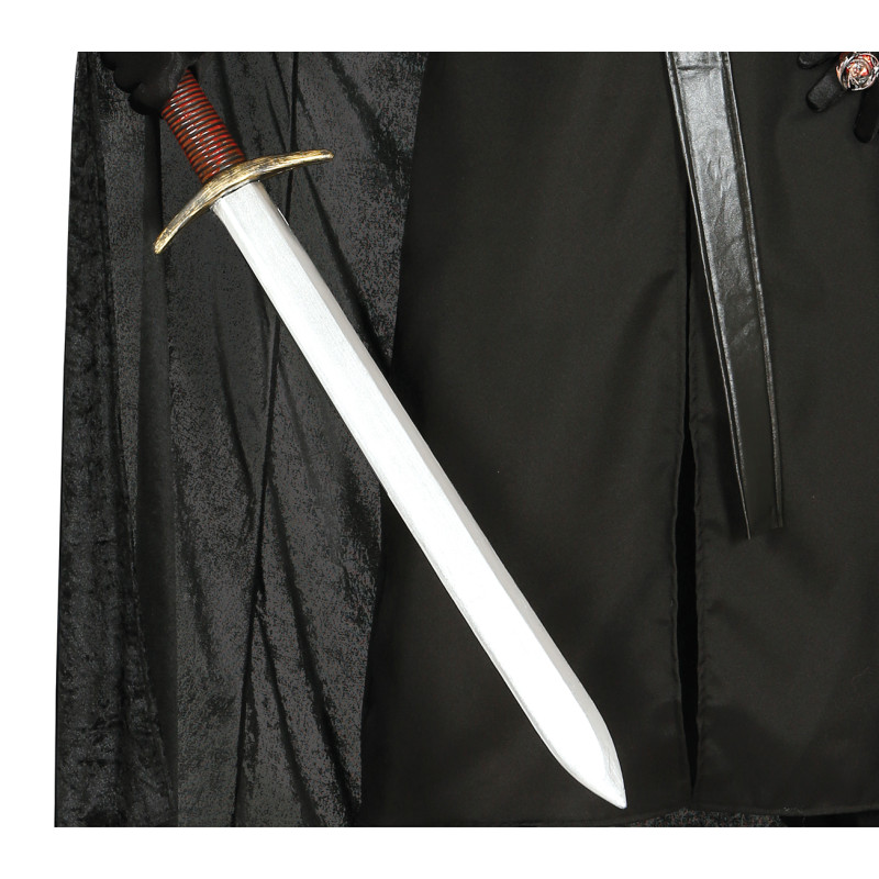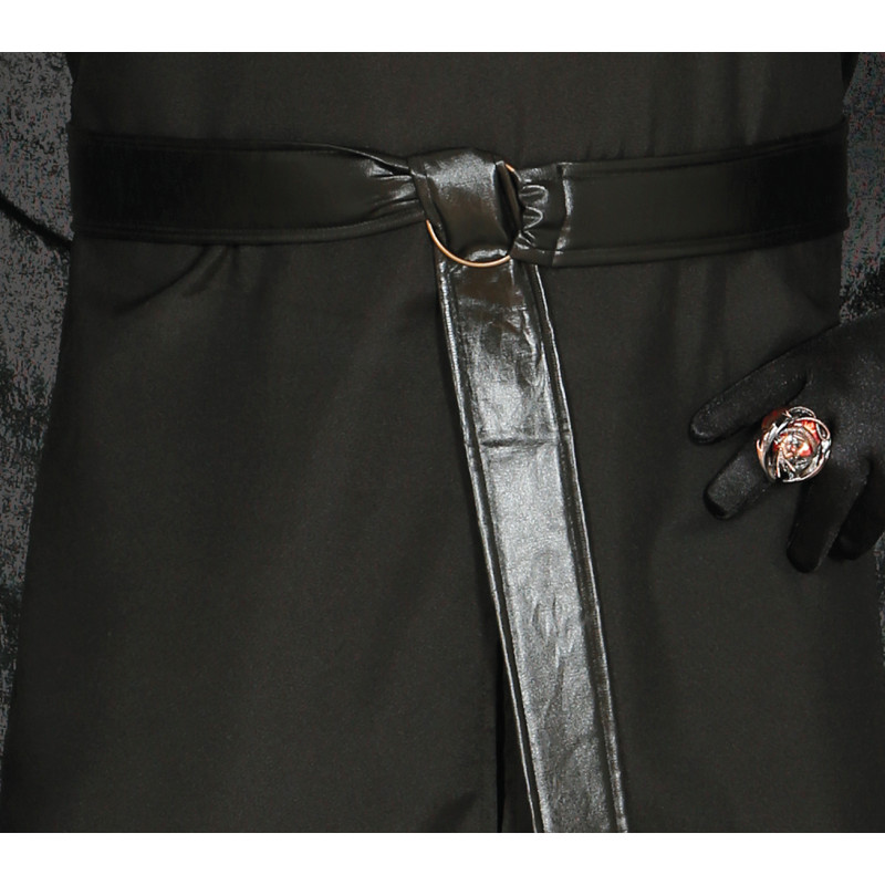 With this fancy dress costume you can transform yourself into a seductive geisha. The costume includes the floor length kimono and the golden belt. The black kimono is designed with trumpet sleeves and printed with golden flowers.