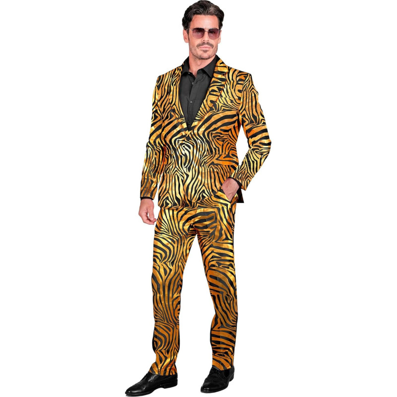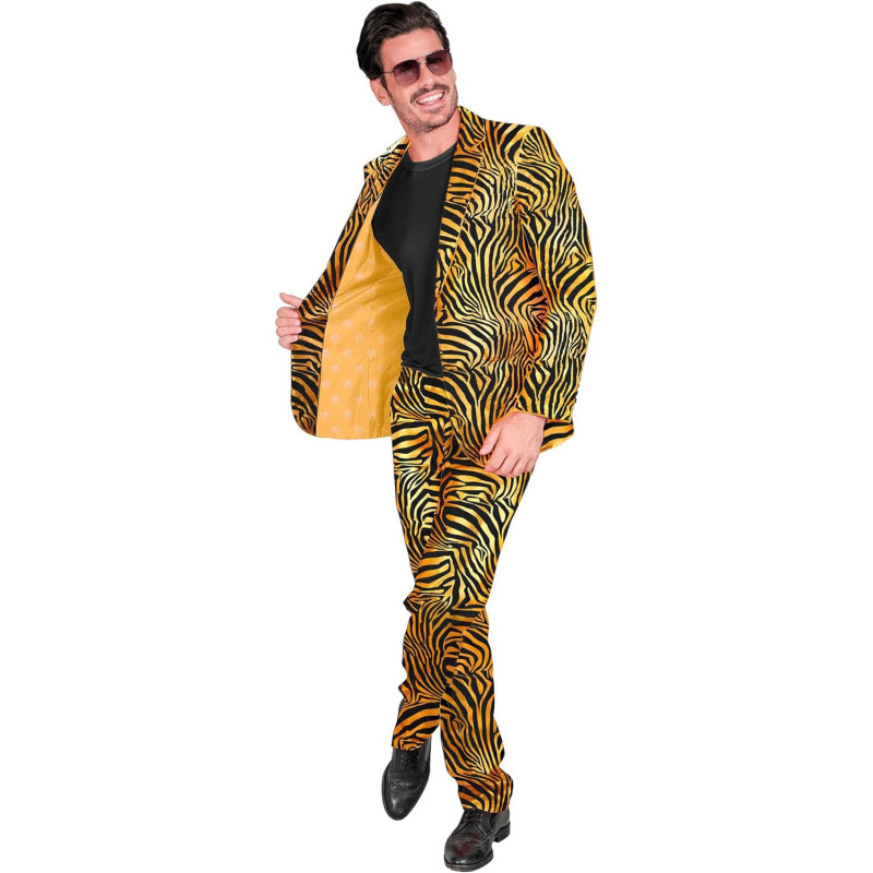 Tiger-Striped Suit Stand out in any crowd with our striking tiger-striped suit. This dynamic and bold design is perfect for making a memorable impression at any formal event or social gathering. Meticulously crafted for both comfort and style, this unique suit guarantees to elevate your fashion game. Indulge in the sophisticated allure and confident appearance afforded by this exceptional attire.