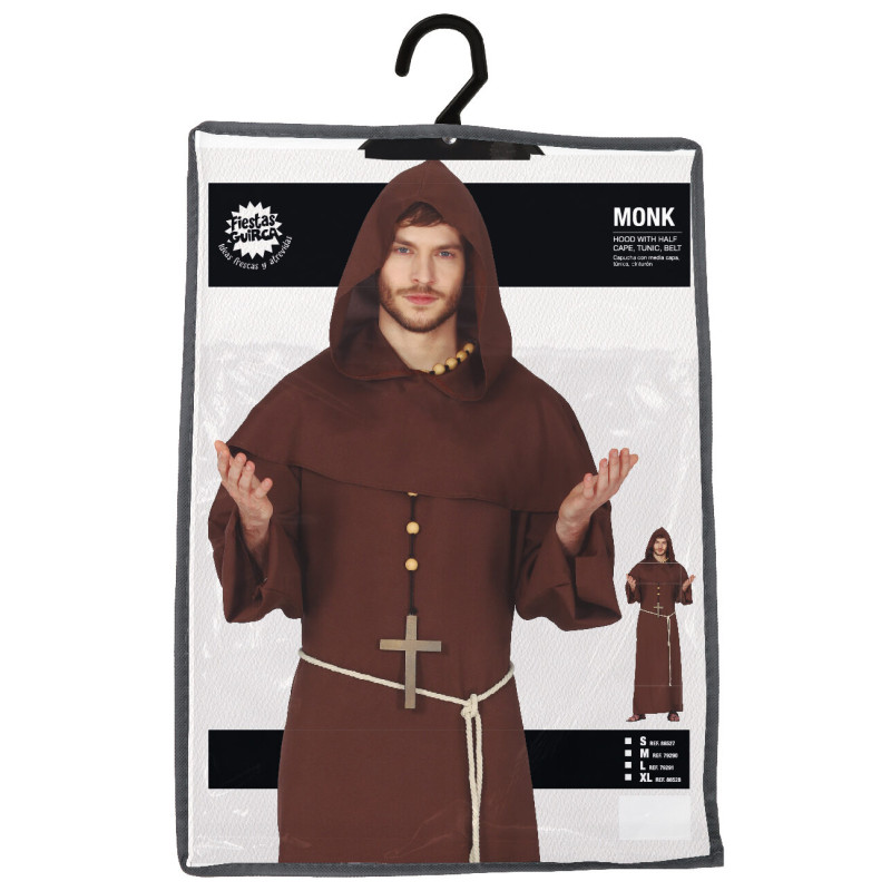 Medieval Monk Costume Contents: Hood With Half Cape, Tunic, Belt • This Ancient Adult Man Monk Outfit Is Made Of Polyester And Conforms To Safety Standards • : A Great Choice For Your Religion Themed Fancy Dress Party