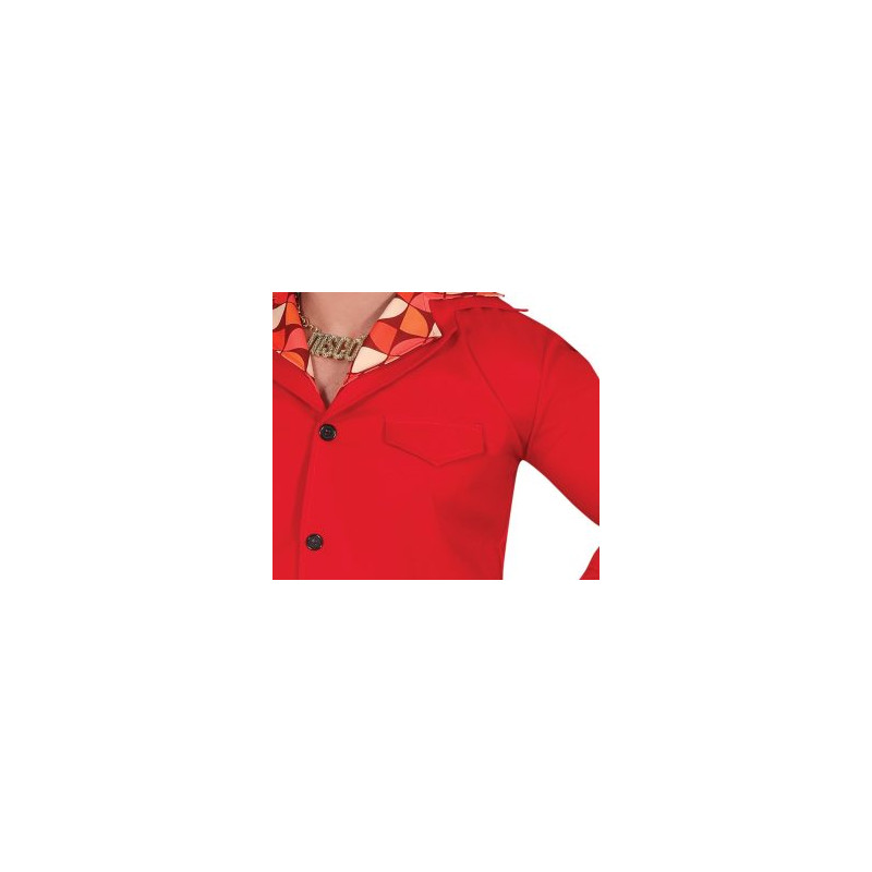 CONTENTS of this red disco star mens fancy dress costume: Jacket, Trousers. NOT_INCLUDED: 70s wig and further accessories • MATERIALS: These fancy dress costumes for men are made of 100% polyester and meet all safety standards so that you can have a great time at your next costume party. • adult fancy dress costumes men: a great choice for your fancy dress or theme party