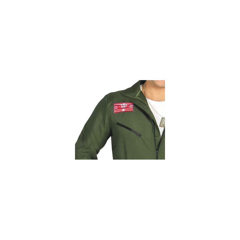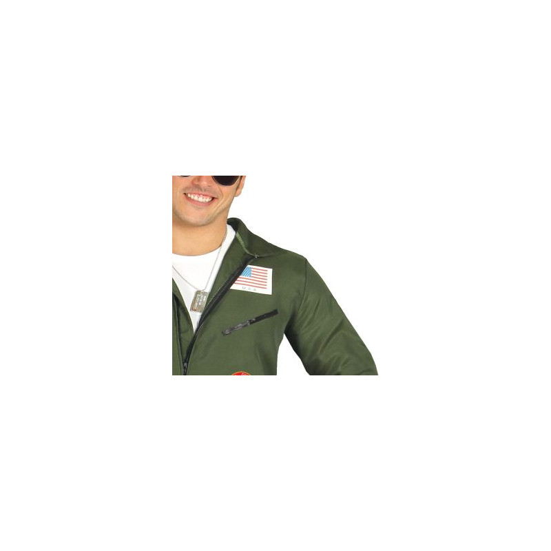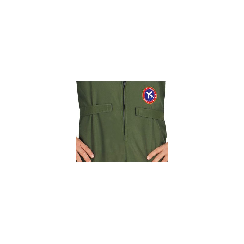 CONTENTS of this hunky fighter jet pilot mens fancy dress costume: Jumpsuit. NOT_INCLUDED: Pilot Sunglasses • MATERIALS: These fancy dress costumes for men are made of 100% polyester and meet all safety standards so that you can have a great time at your next costume party. • adult fancy dress costumes men: a great choice for your fancy dress or theme party