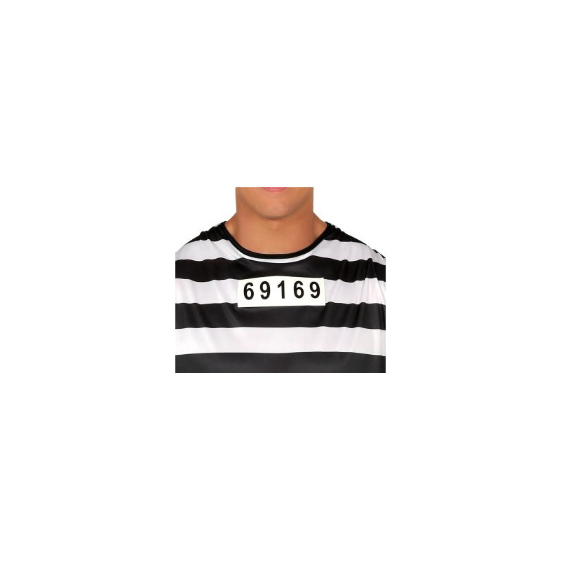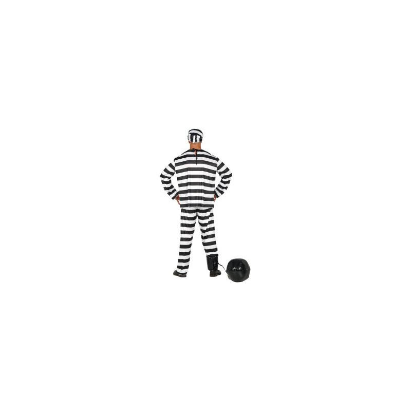 CONTENTS of this prisoner mens fancy dress costume: Hat, Shirt, Trousers. NOT_INCLUDED: Ball and Chain •MATERIALS: These fancy dress costumes for men are made of 100% polyester and meet all safety standards so that you can have a great time at your next costume party. • adult fancy dress costumes men: a great choice for your fancy dress or theme party