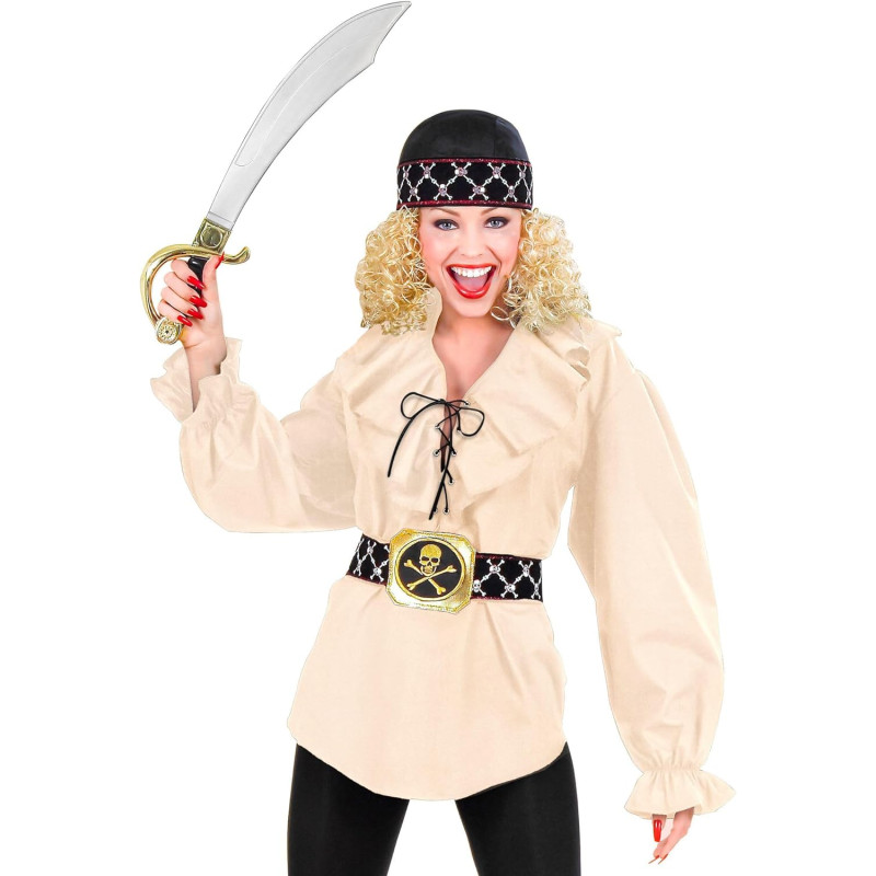Embrace the ultimate pirate look with this elegant costume designed for women. The sophisticated ruffled blouse, combined with notable authentic accessories, offers an eye-catching, adventurous appearance. Perfect for themed parties, cosplay events, or Halloween, this costume ensures a memorable and stylish entrance, capturing the spirit of the high seas.