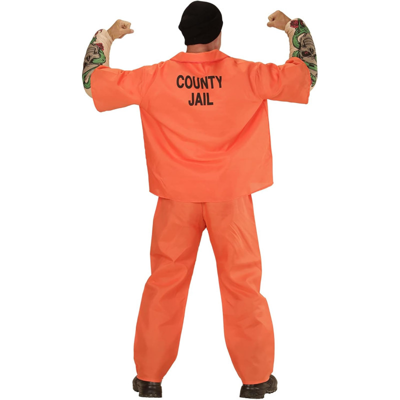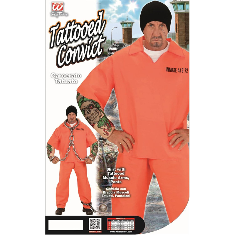 Tattooed convict costume for men include tattooed muscle arms top and trouser. It is perfect for carnival, themes arty and other occasion.