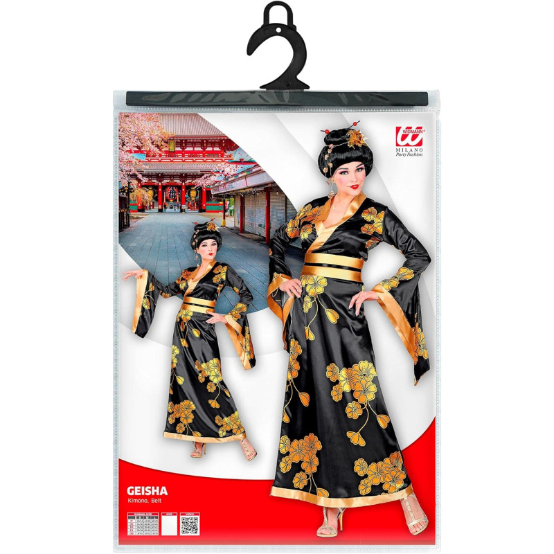 Indulge in the allure of traditional Japanese aesthetics with this exquisite Geisha costume. Adorned with intricate floral patterns and complemented by luxurious gold accents, this outfit exudes sophistication and grace. Perfect for themed events and cultural celebrations, this costume guarantees an authentic and captivating look. Elevate your presence with this timeless piece that embodies the elegance of a refined era.