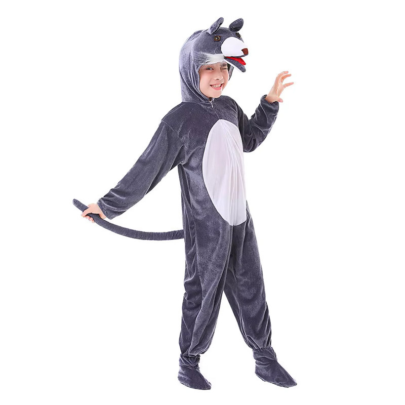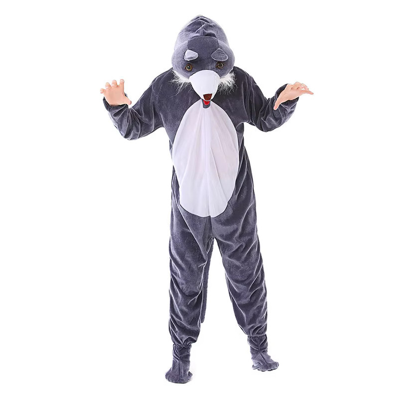 Wolf costume for kids - a fun jumpsuit with a tail, perfect for themed parties, Halloween, or carnivals.