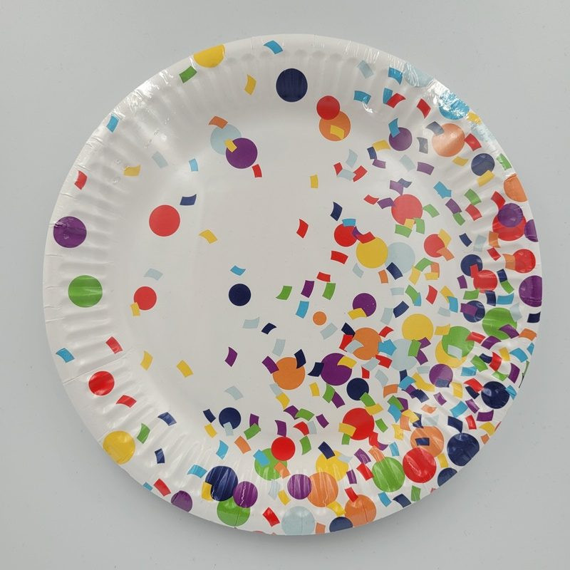 Disposable paper plates „Confetti” – suitable for dry, fatty and non-acidic foods.