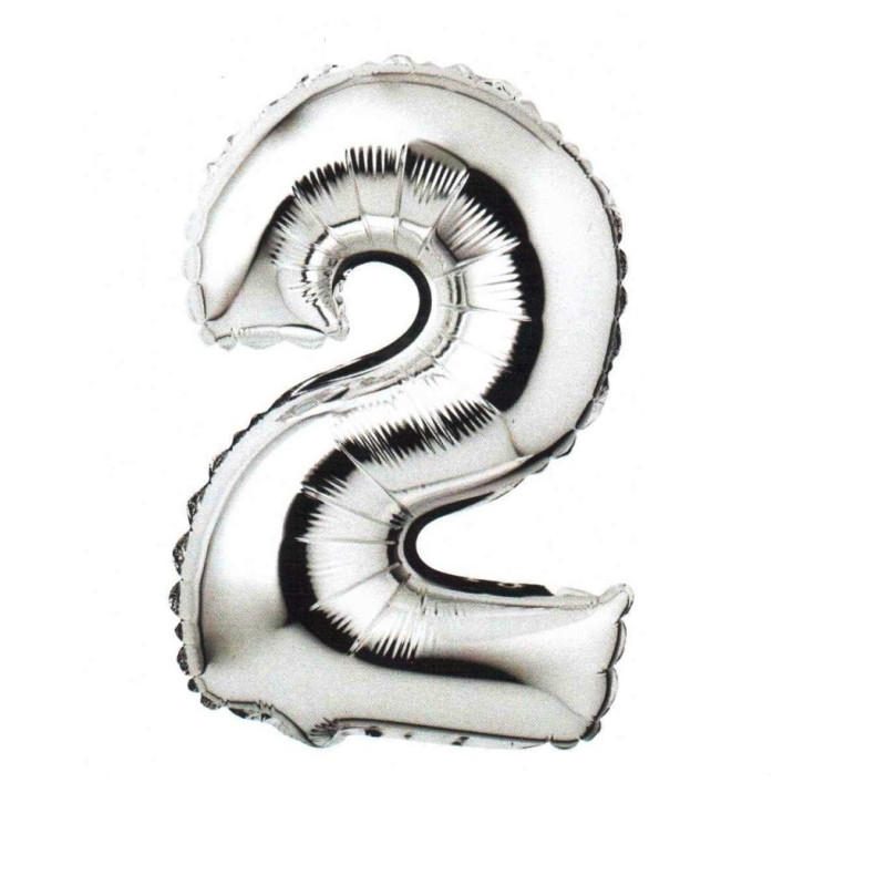 Folija balons numurs 2, sudraba krāsā, 1 gab.
