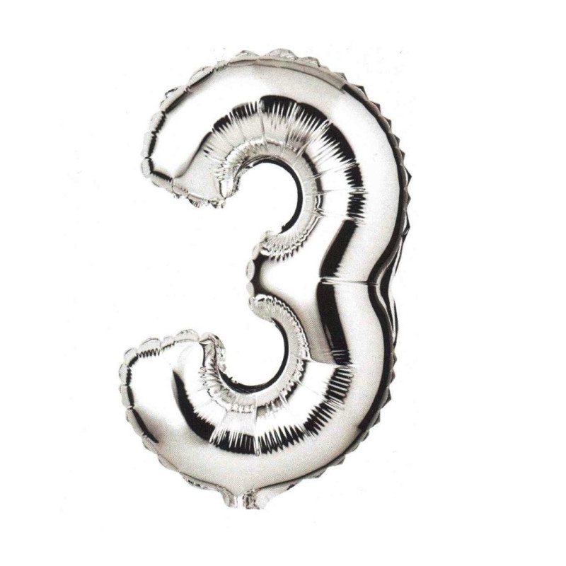 Folija balons numurs 3, sudraba krāsā, 1 gab.