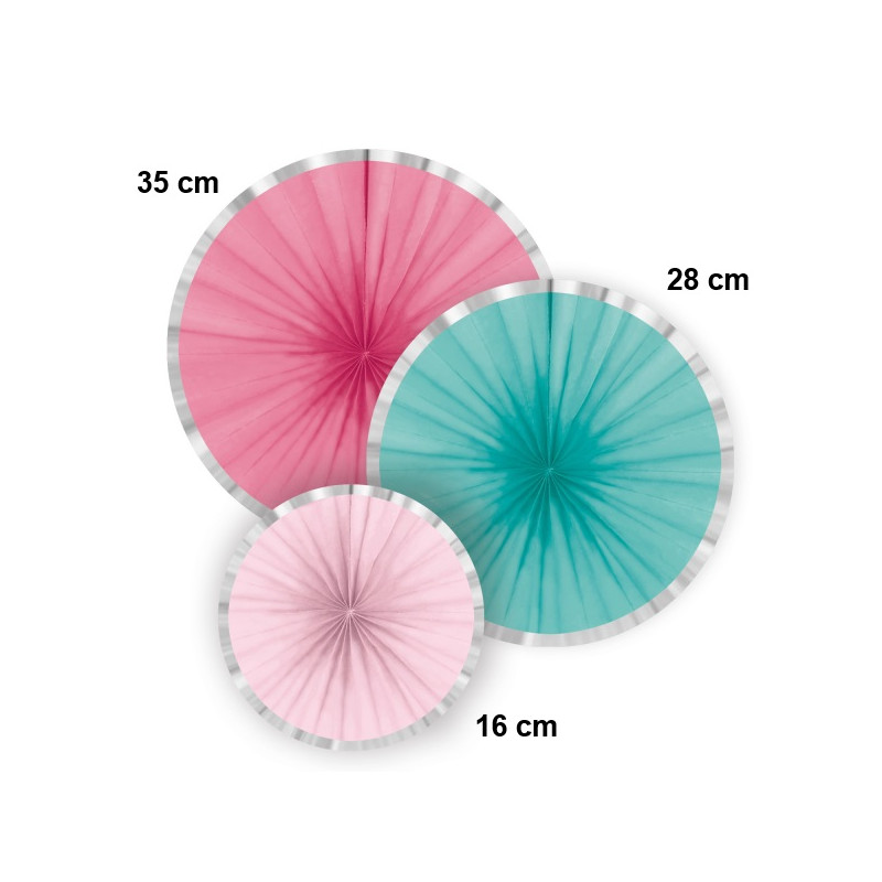Stilīgas un krāsainas papīra vējdzirnavas ar elegantu malu - ideāla izvēle svētkiem un interjera dekoram. Komplektā ietilpst 3 dažādu izmēru vējdzirnavas (16 cm, 28 cm, 35 cm), kas piešķirs jautrību un eleganci jūsu telpai.