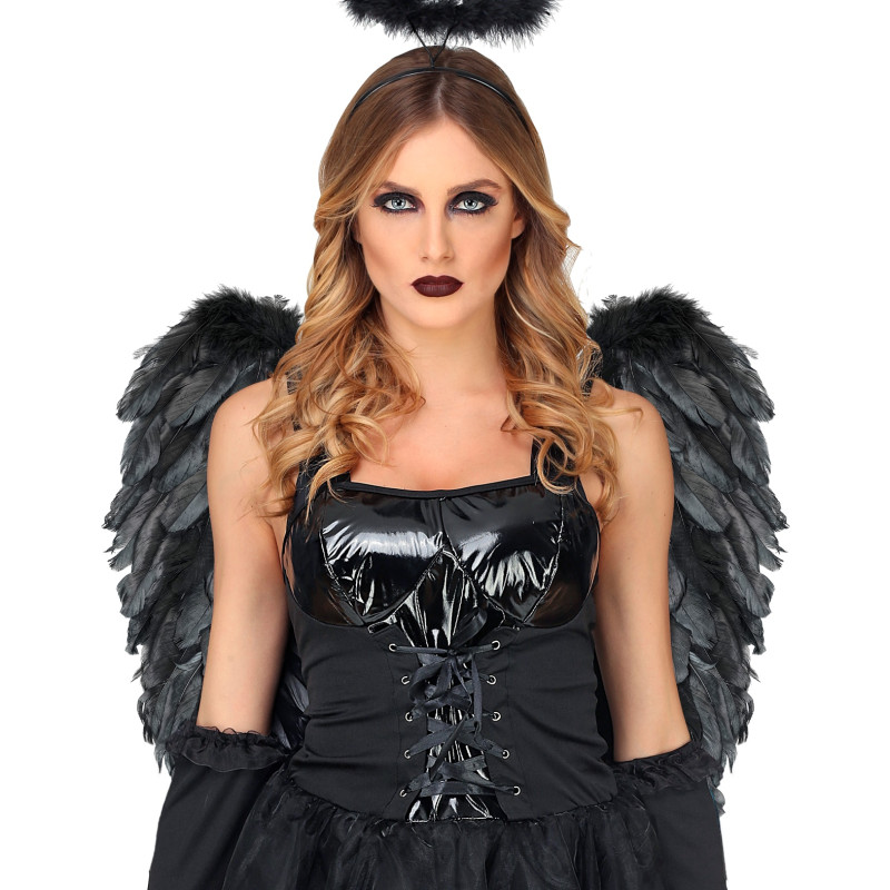 Melnās salokāmās spalvu spārni: elegants un viegls elements, ideāli piemērots jebkura tēma tērpa papildināšanai!