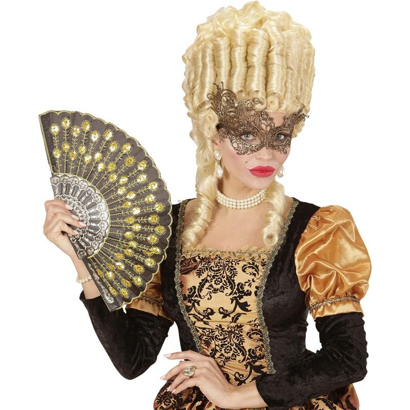 Senlaicīga zelta baroka mežģīņu acu maska. Materiāls: 100% poliesters. Mazgāt ar rokām, balināt nedrīkst, nežāvēt žāvētājā, nedzelzt, neķīmiski tīrīt.