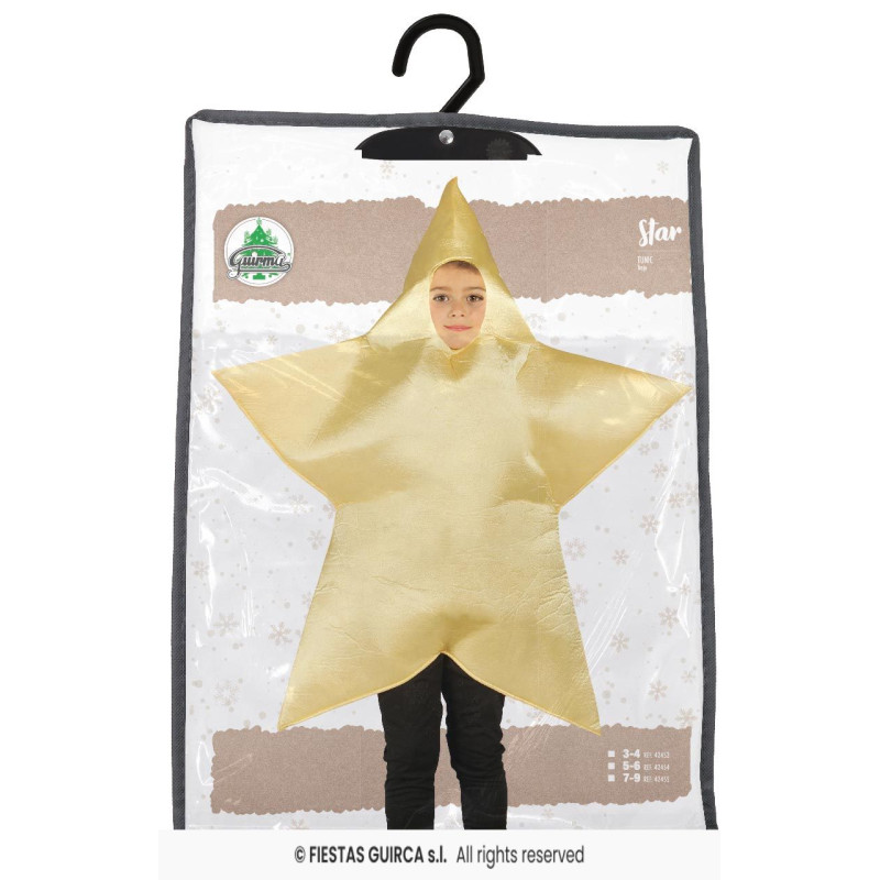 Šis zelta Ziemassvētku zvaigžņu kostīms lieliski piestāv mazajiem, kuri vēlas spīdēt svētku laikā!