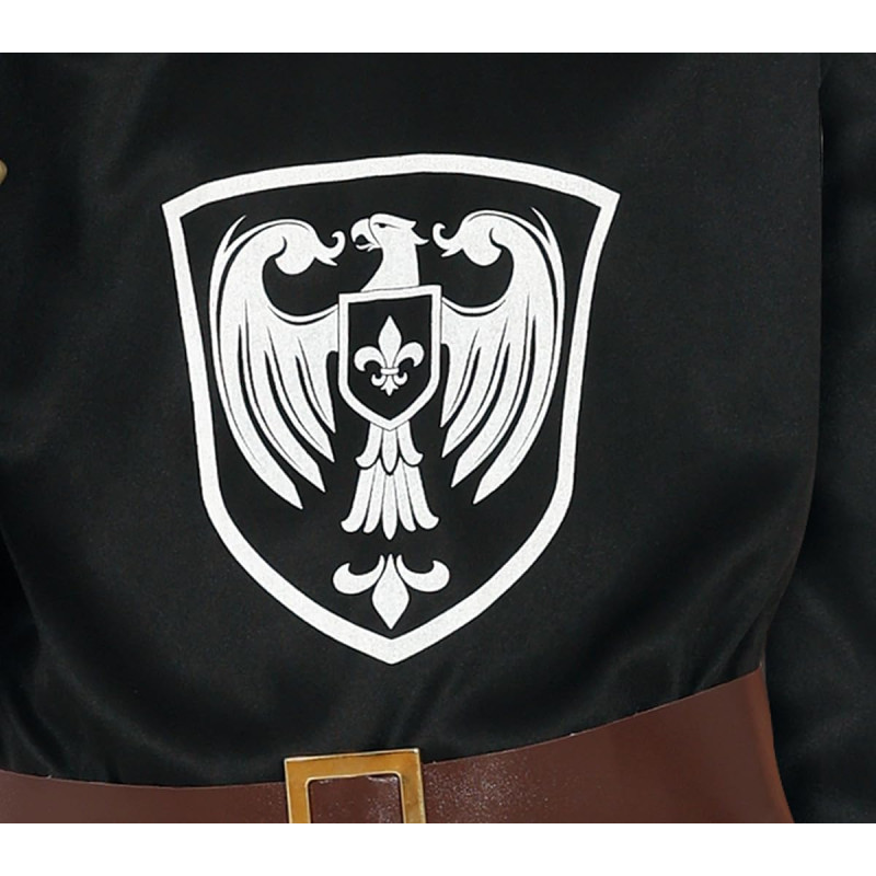 Vietne no drosmīgās viduslaiku karavīra puikas tērpa: Tunika ar kakla gabalu, Josta. NAV IETILPUSI: Kara aksesuāri • MATERIĀLI: Šis viduslaiku bruņinieka tērps ir izgatavots no 100% poliestera un atbilst visiem drošības standartiem, tāpēc katrs puika var pārvērsties savā iecienītākajā varonī. • : lielisks izvēle bērnu bruņinieka tērpam jūsu tērpu ballē
