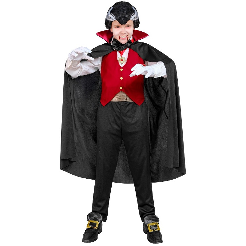 Ļaujiet savam bērnam iekarot savu biedējošo pusi ar mūsu luksusa vampīra kostīmu. Šis komplektā ietilpst stilīgs vestes, jostas, papīra kaklasaite, medaļa, cimdi un plūstoša mētelis, kas izgatavots no 100% poliestera, lai nodrošinātu komfortu un izturību. Ideāli piemērots Halovīnam, kostīmu ballēm un izdomas spēlēm, šis kostīms nodrošina, ka jūsu mazais vampīrs būs jebkuras pasākuma uzmanības centrā, apvienojot biedējošu eleganci ar ilgstošu nēsāšanu.