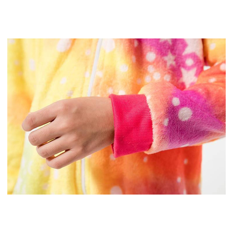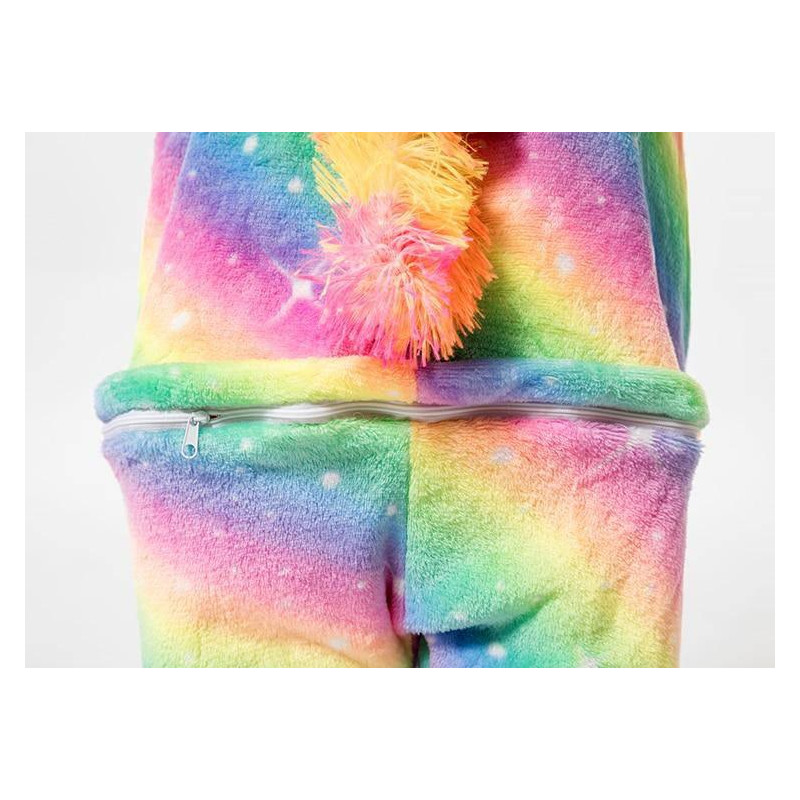 Krāsainais vienradža kostīms ir ērts un ērti valkājams kombinezons ar kapuci.