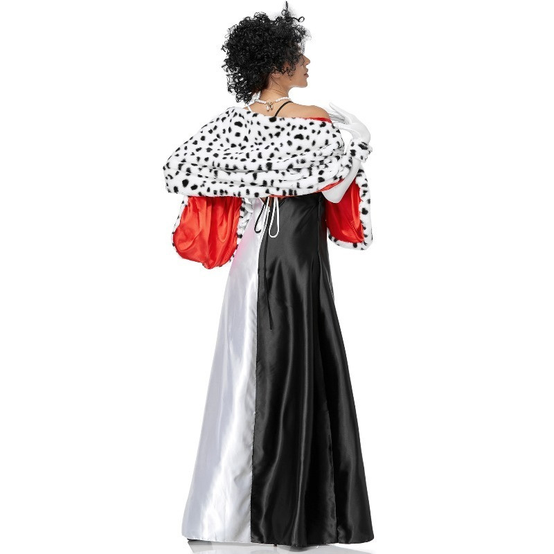 Sieviešu Cruella kostīms - Dažreiz vēlaties būt slikta meitene? Tēmu ballītes ir lieliska iespēja tam! Šis ir izsmalcināts svētku kostīms, kas atstās neatmirstamu iespaidu uz ballītes viesiem.