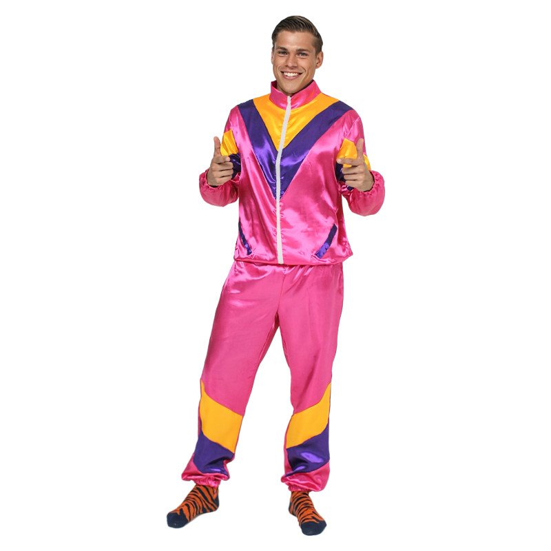 Noslēdziet 80. gadus ar šo izteiksmīgo retro treniņu! Spilgtā neona krāsu kombinācija piesaistīs uzmanību jebkurā ballītē vai festivālā. Viegla un ērta materiāla nodrošina stilu un kustību brīvību. Komplektā ietilpst pievilcīga jaka ar kapuci un saskaņotas bikses, tāpēc tas ir ideāls izvēle tiem, kuri vēlas pievienot retro akcentus savam svētku stilam. Iepriecinieties pagātnes stilu ar mūsdienīgu ērtību!