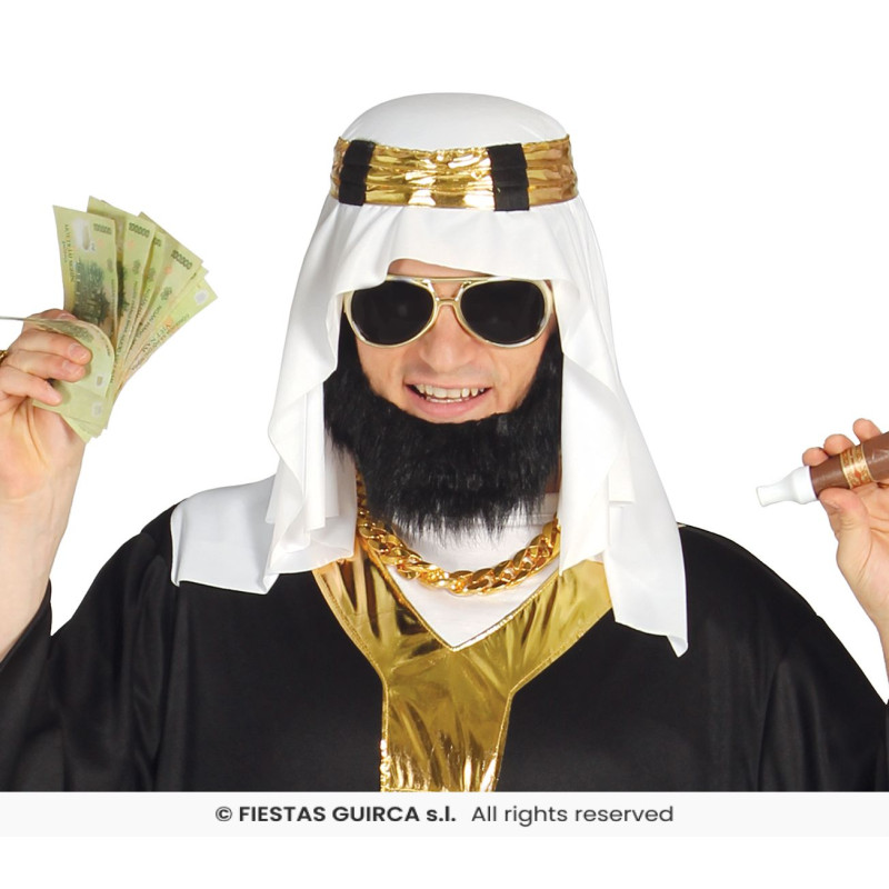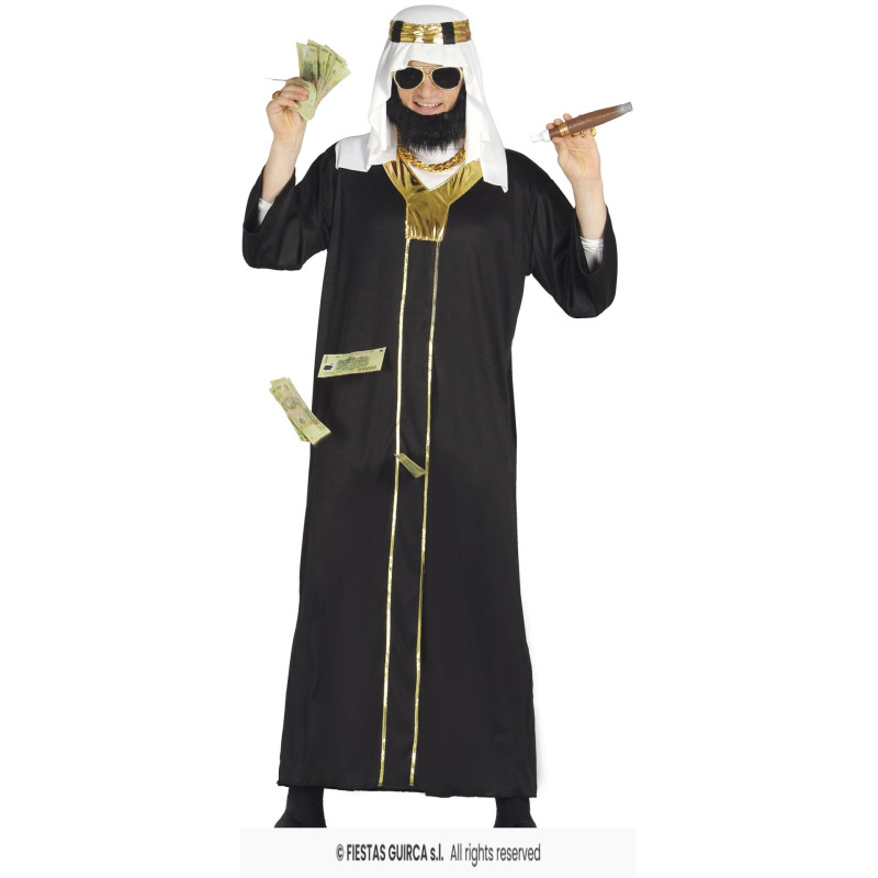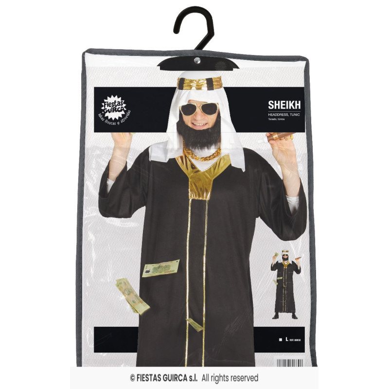Pilngadīgo šeihu kostīms: tunika un galvas aizsegals, kas radīs autentisku Tuvajiem Austrumiem raksturīgu šeihu tēlu - lieliska izvēle tematiskiem pasākumiem vai svētkiem.