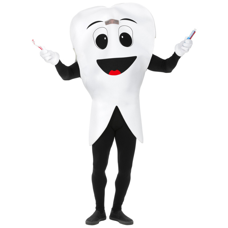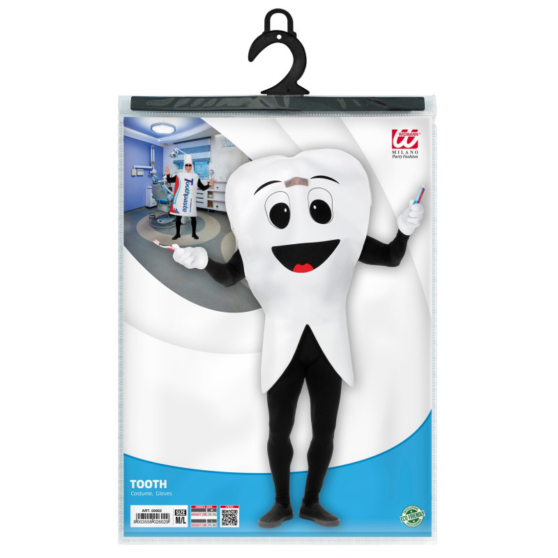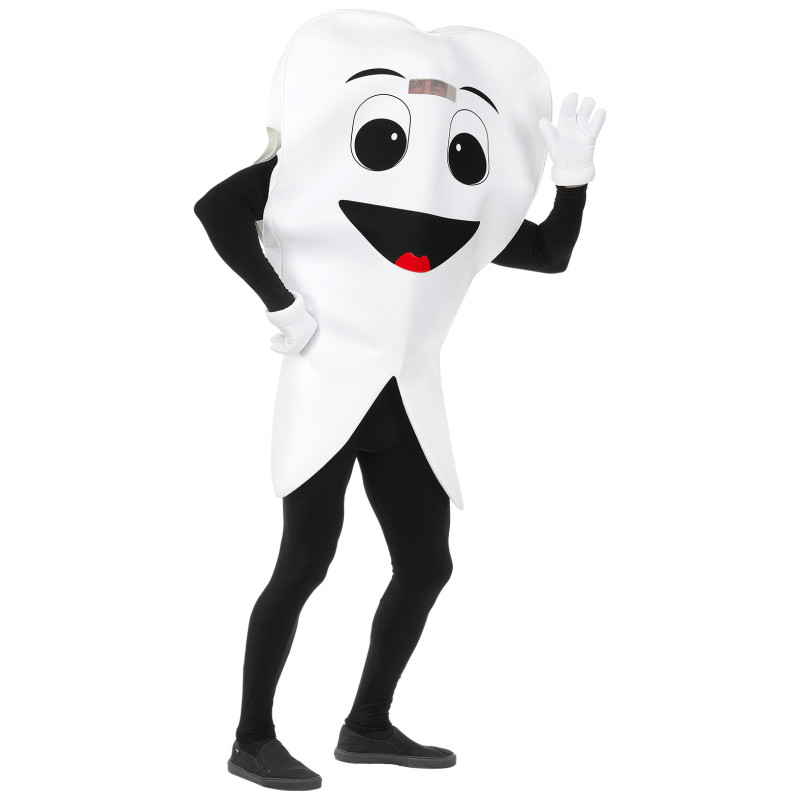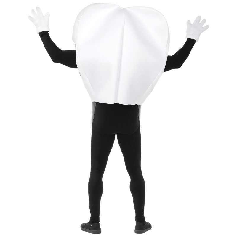 Zobu kostīms pieaugušajiem – tas ir unikāls un jautrs izvēles variants tiem, kas vēlas izcelties tēmu ballītēs vai karnevālos. Kostīms atkārto zoba formu, piešķirot smieklīgu un draudzīgu tēlu, un piegulošās cimdi papildina kostīma ideju un nodrošina vienotu iespaidu. Izgatavots no vieglas, ērtas materiālas, šis kostīms ļauj brīvi kustēties un nodrošina, ka jūtaties ērti pat garākā pasākuma laikā. Tas ir ideāls izvēles variants ballītēm, Helovīna svinībām vai citiem pasākumiem, kur humoram un labai noskaņai ir būtiska nozīme. Ar šo kostīmu jūs būsiet īsta ballītes smaids!