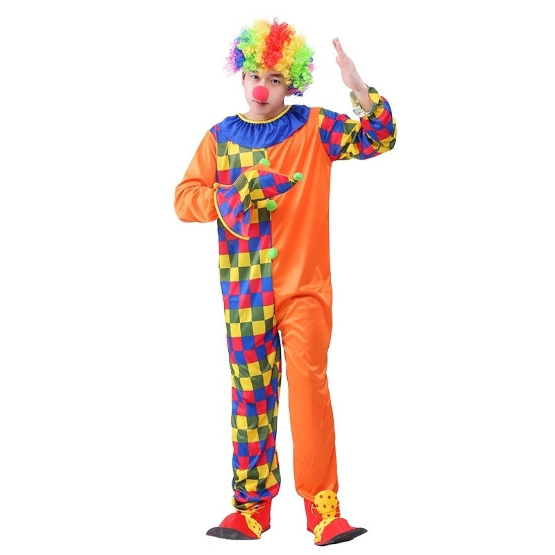Klauna kostīms pieaugušajiem - krāsains un rotaļīgs kostīms, ideāli piemērots karnevāliem, tematiskām ballītēm vai pasākumiem, kur vēlaties radīt rotaļīgu un jautru atmosfēru apkārtējiem!