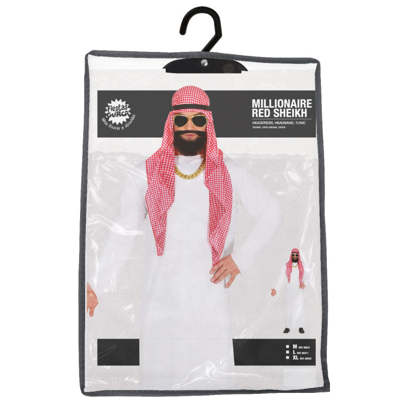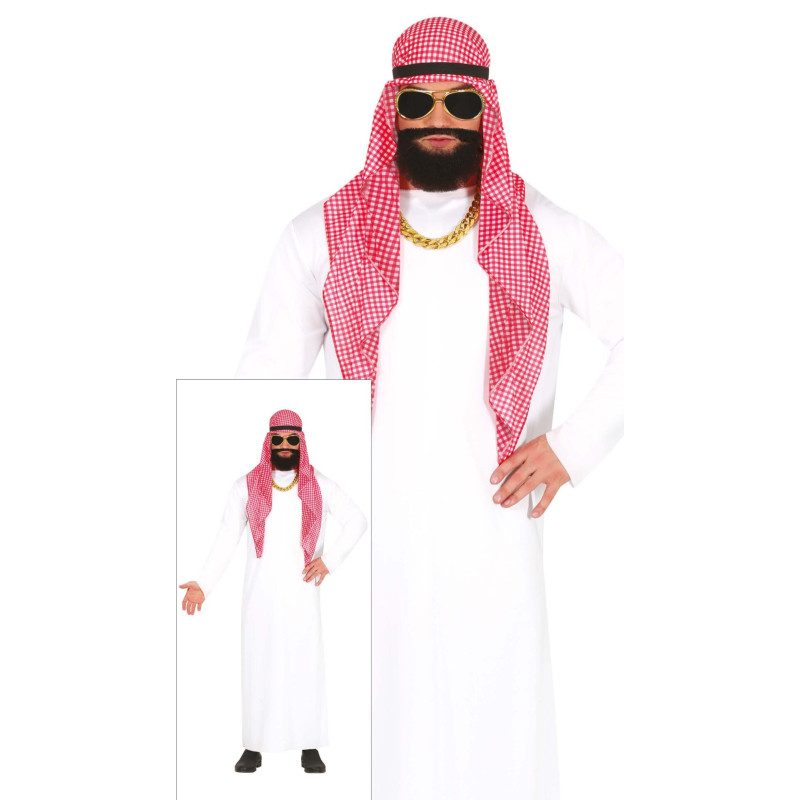 SATURA šī miljonāra šeiha vīriešu masku tērpa: Šalle, Galvas lente, Tunika. NAV IEKĻAUTS: Aksesuāri