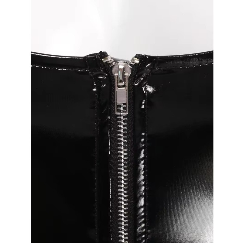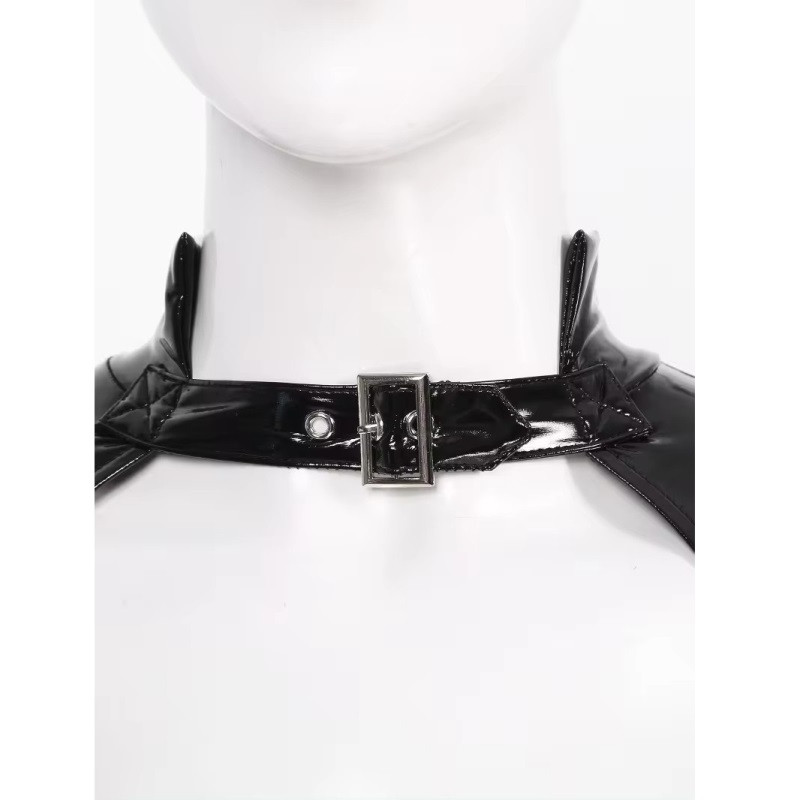 Sieviešu lakādas imitācijas bodijs ar izgriezumiem, īsām piedurknēm un rāvējslēdzēju. Izgatavots no mīksta auduma, elpojošs, ādai draudzīgs, patīkams pieskārienam un nēsāšanai. Spīdīgs izskats, īsas piedurknes, stāvkrāsns ar regulējamu sprādzi. Bodijs ar izgriezumiem, priekšējā rāvējslēdzēja aizdare, viegli uzvilkt un novilkt. Ideāli piemērots randiņu vakaram, ballītei, deju klubam
