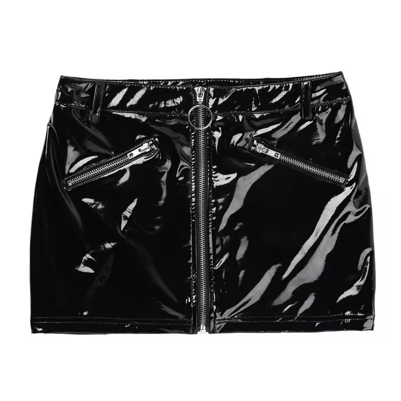 Sieviešu mākslīgās ādas pieguļoši mini svārki, spīdīgi un vienkrāsaini.