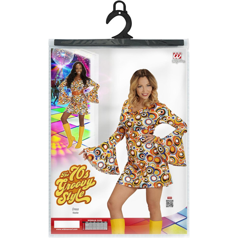 Papildiniet savu garderobi ar šo stilīgo retro iedvesmotu kleitu, kas ir izstrādāta, lai iepriecinātu ar savām drosmīgajām, uzmanību piesaistošajām aplīmēm. Ideāli piemērota tiem, kas vēlas veidot dinamisku modes paziņojumu. Dzīvīgie krāsu toņi un unikālais dizains nodrošina, ka jūs izcelsieties jebkurā pasākumā vai ikdienas pasākumā.