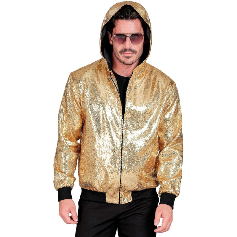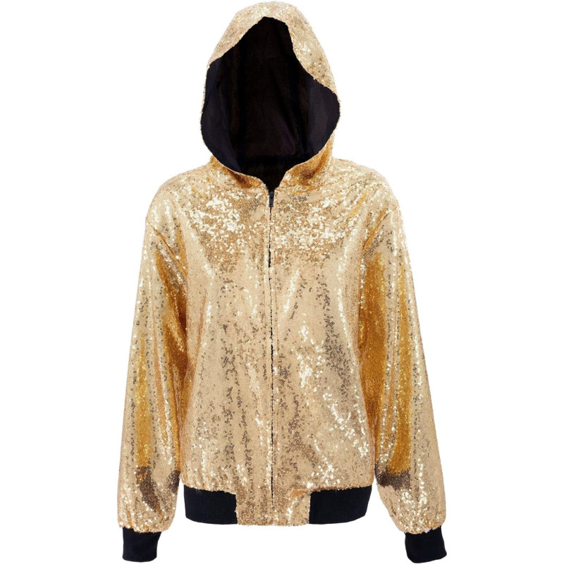 Karnevāla kostīms Zelta Spīdumu Kapuci Bombera Jaka ir apburošs un stilīgs apģērbs, kas izceļas ar savu zelta spīdumu dizainu. Tās galvenās īpašības ietver kapuci, bombera jakas stilu un ērtu pieguļamu. Jaka piedāvā priekšrocības, piemēram, siltumu, daudzpusību un modīgu izskatu. Tās unikālās pārdošanas punkti ir acu pievilcīgie zelta spīdumi un spēja uzlabot jebkuru tērpu, padarot to par obligātu iegādi kārnavaļa svinībām vai jebkuram svētku gadījumam.