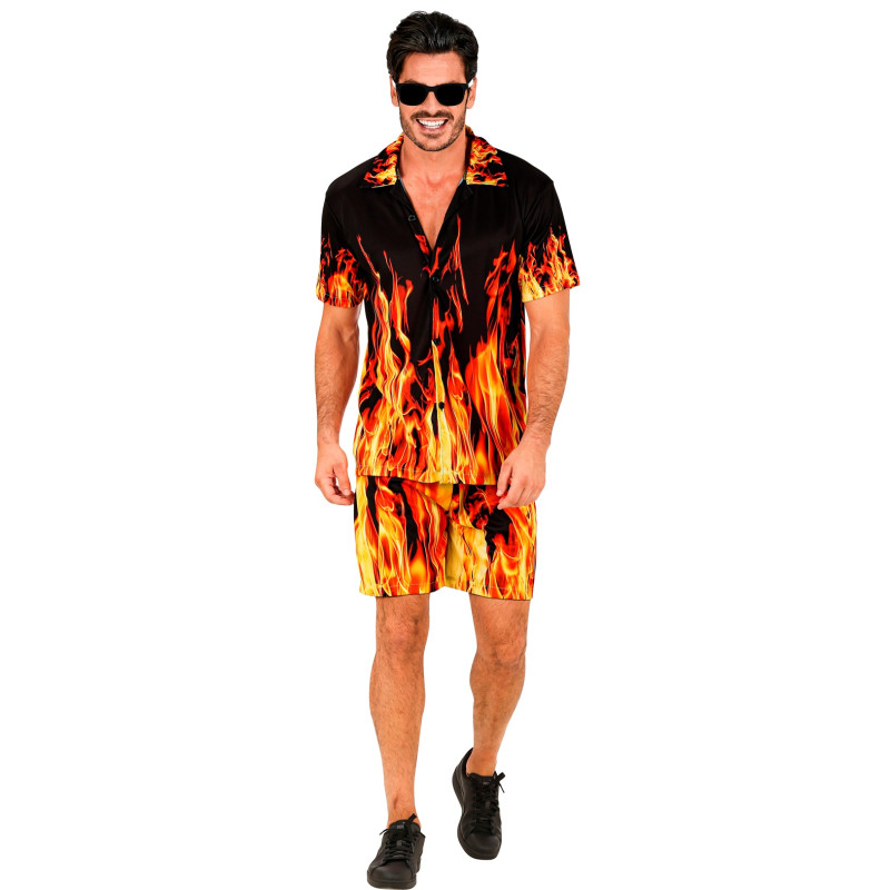 Vasarā uzkur uguni ar mūsu vīriešu melno tērpu ar dinamisku uguns izdruku. Šis stilīgais komplekts ietver atbilstošu kreklu un šortus, kas abi izgatavoti no 100% poliestera, nodrošinot vieglu un elpojošu pieredzi. Ideāli piemērots, lai radītu drosmīgu iespaidu pludmales ballēs, mūzikas festivālos vai neformālās sapulcēs, šis unikālais tērps apvieno komfortu un izteiksmi, lai nodrošinātu, ka izceļaties jebkurā pūlī.